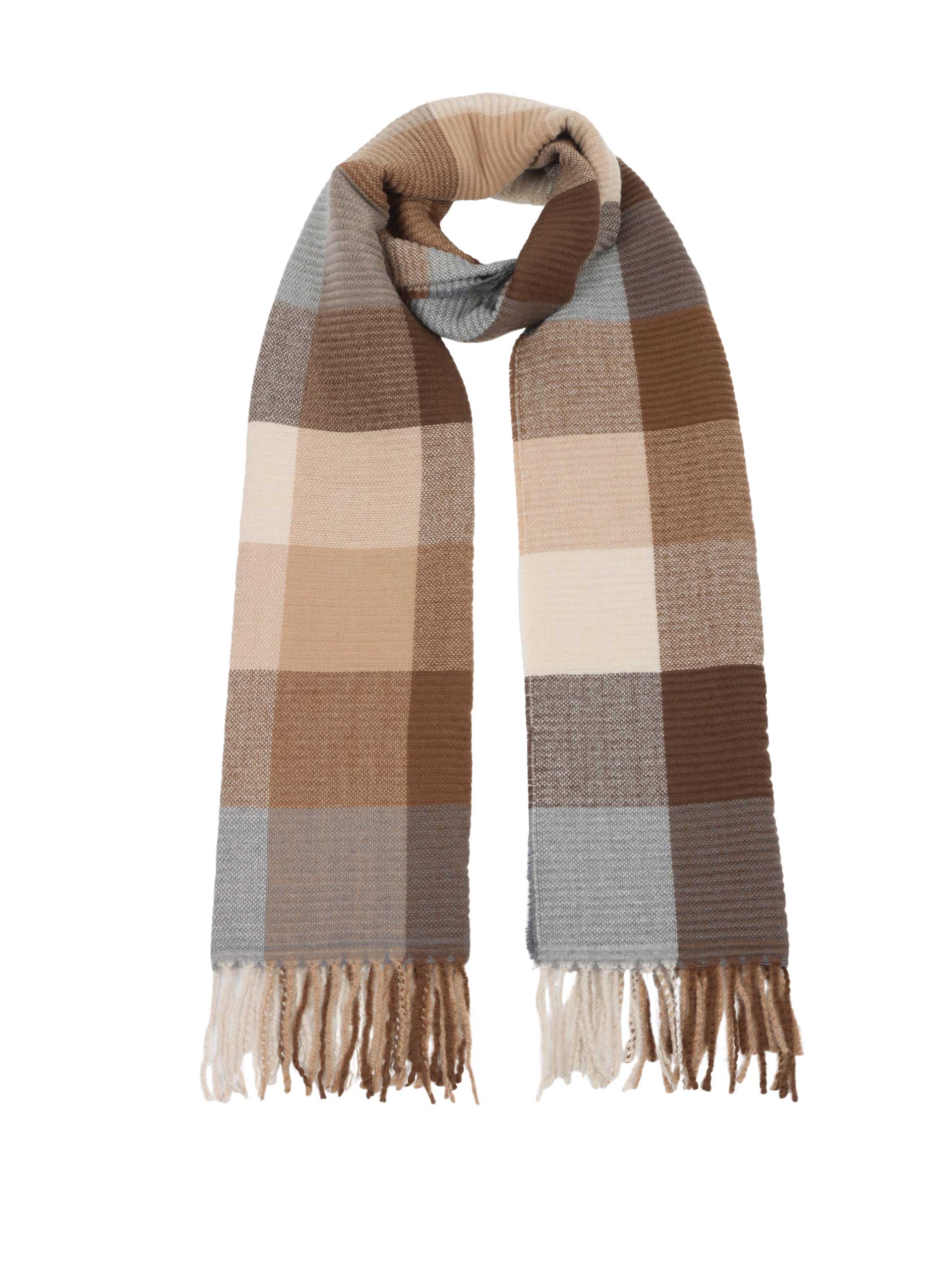 Leichter, kuschelig warmer Plissee-Webschal mit Blockkaro-Muster in melierten topaktuellen Farben der Saison. Er lässt sich vielseitig kombinieren, rundet Dein Outfit zeitlos modisch ab, fällt fließend, wärmt und trägt sich sehr angenehem. Ein Must-Have-Accessoire!