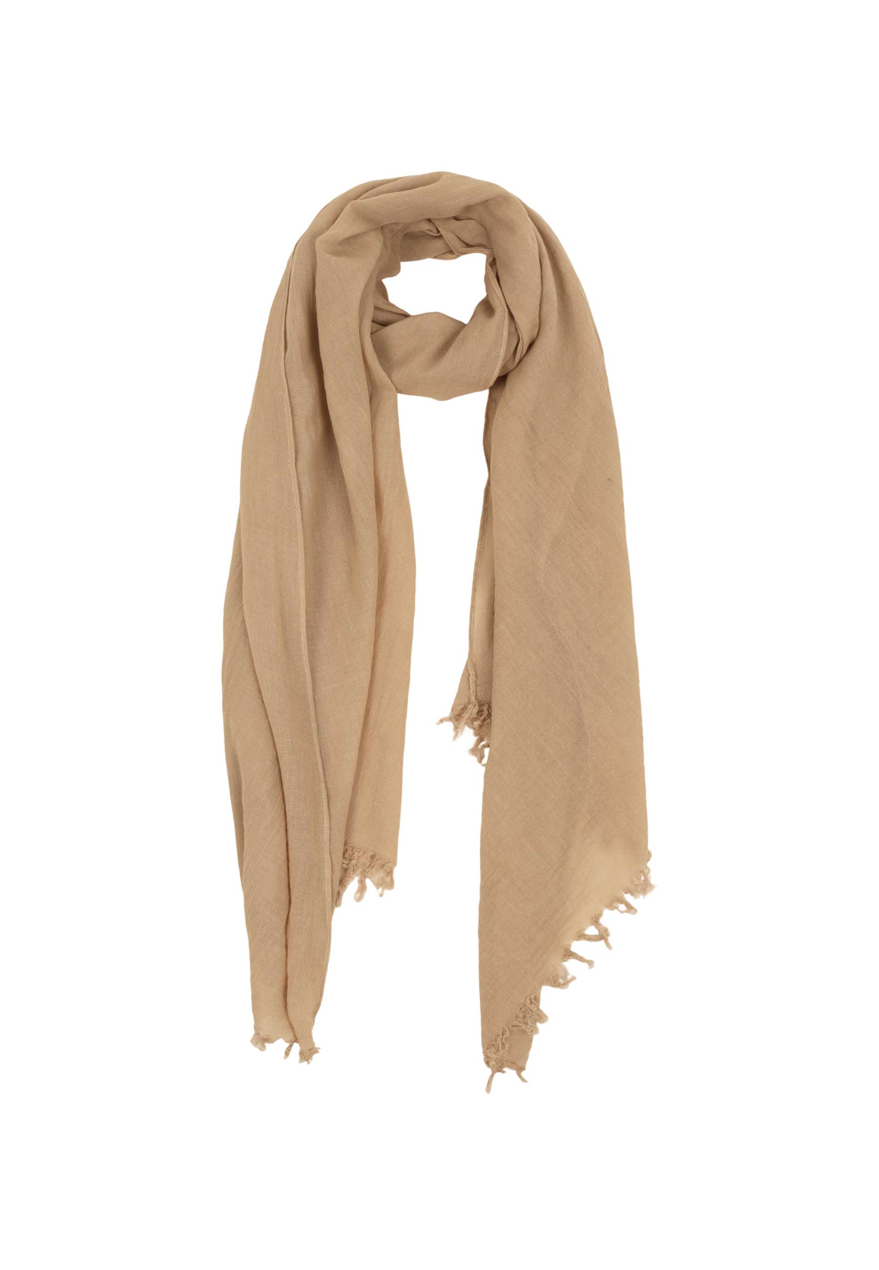 Leichter Baumwoll-Breitschalschal gecrasht mit lässigen Zupffransen in topmodisch, sommerlich frischen Farben.