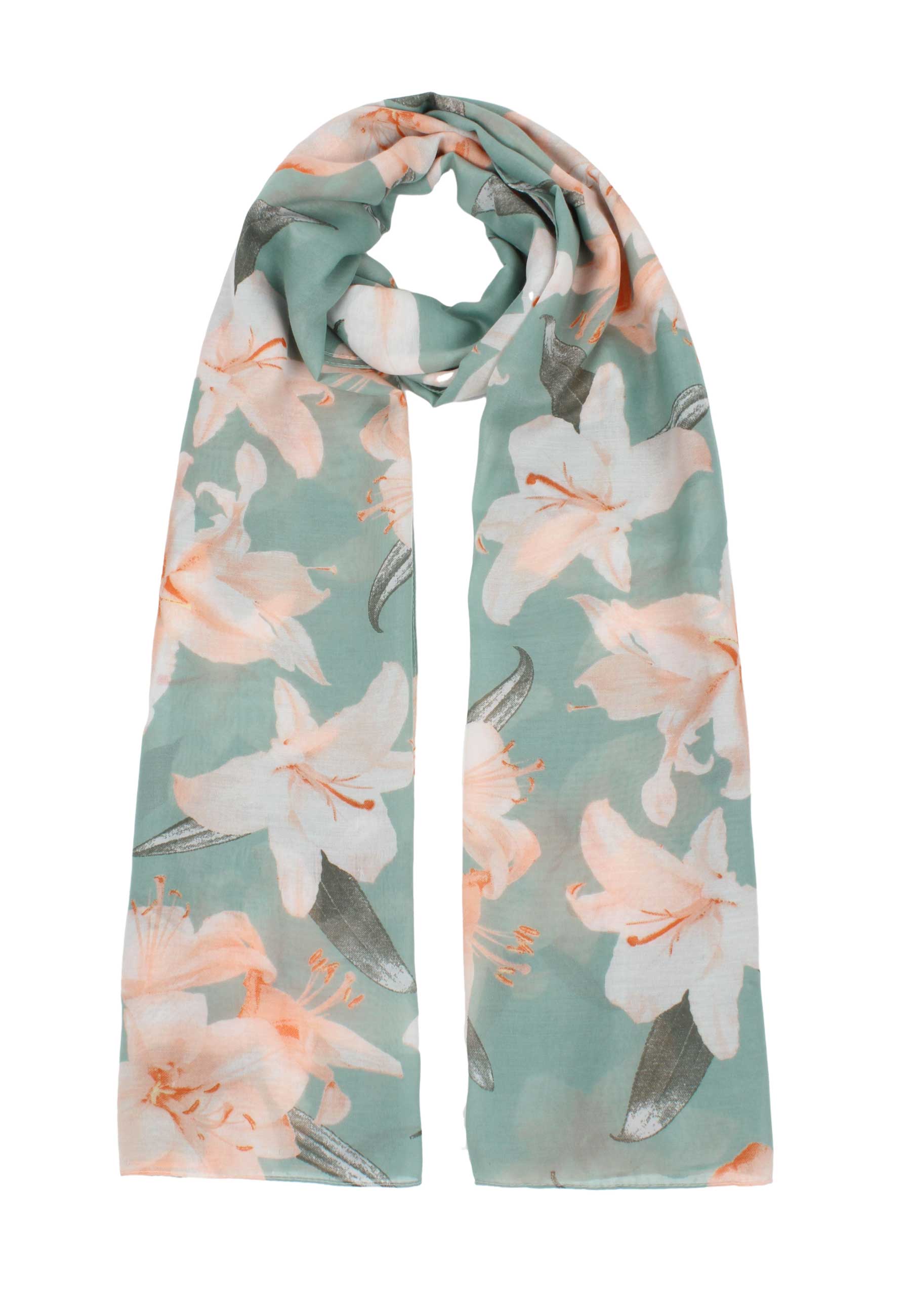Luftig leichter, weicher Breitschal mit wunderschönem, floralem Print in auffallend harmonischen Farben.