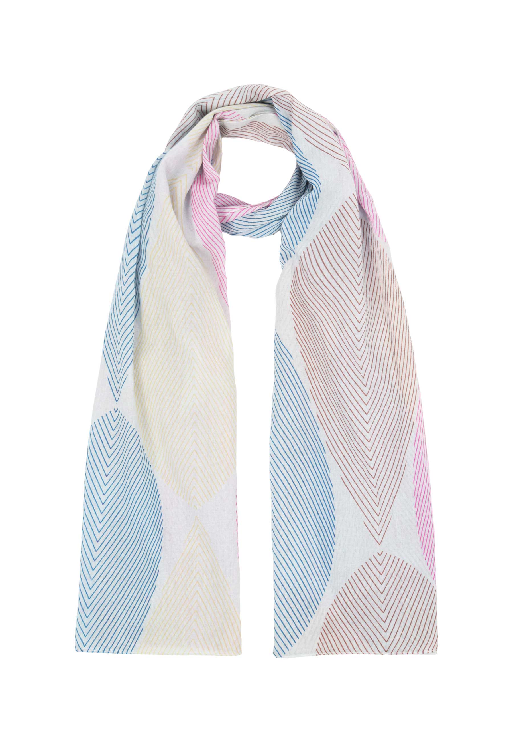 Leichter Breitschal in sommerlicher Qualität mit grafischem Muster.