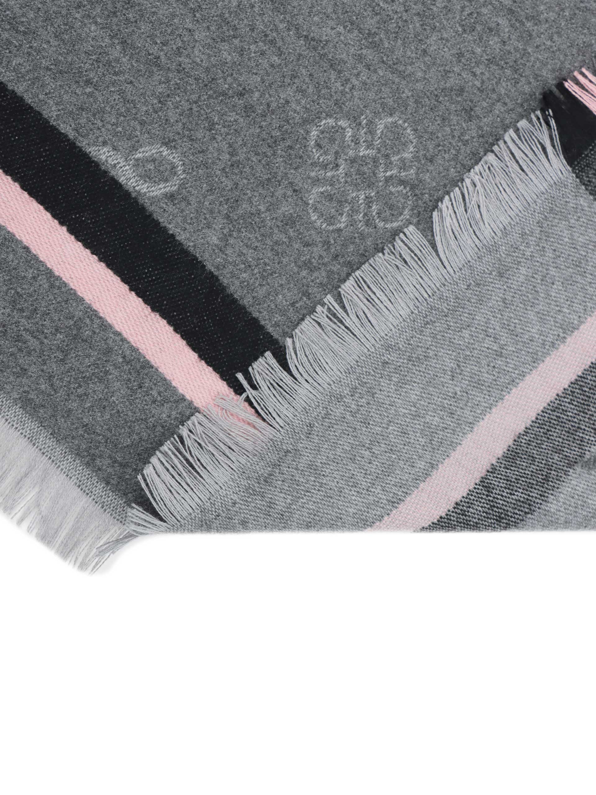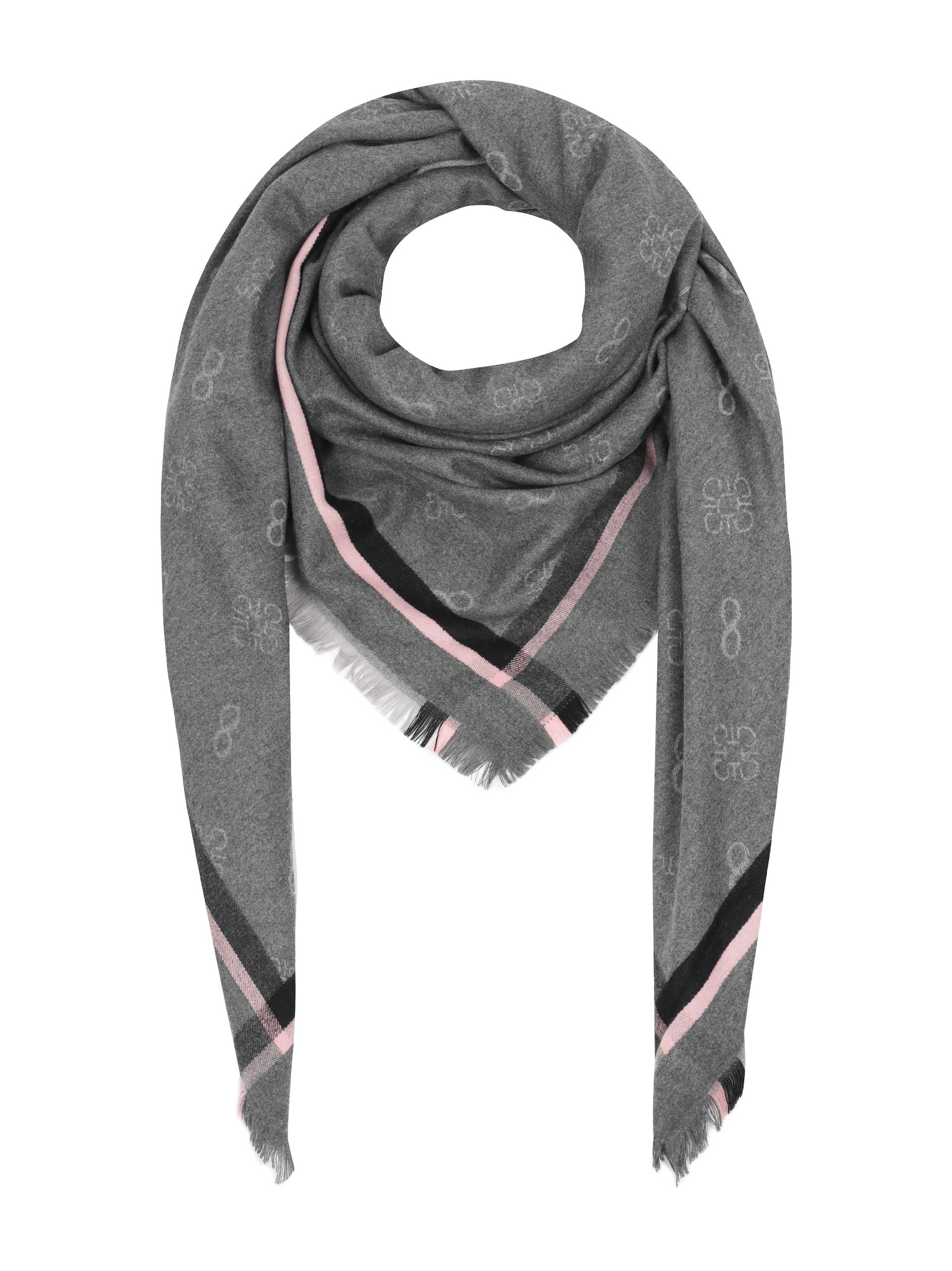 Leichtes Jacquardtuch in stylischer Übergröße mit umlaufender Zupffranse. Es ist schön weich, umhüllt den Hals sehr angenehm und fällt fließend. Ob über die Diagonale zum XXL-Schal verdreht oder zum Dreieck gelegt und als lässiges Halstuch getragen, es macht Dein Outfit zu einem wirklich besonderen. Zwei farbige Streifen umrahmen das gewebte grafische Muster. Ein Must-Have-Accessoire der Saison.