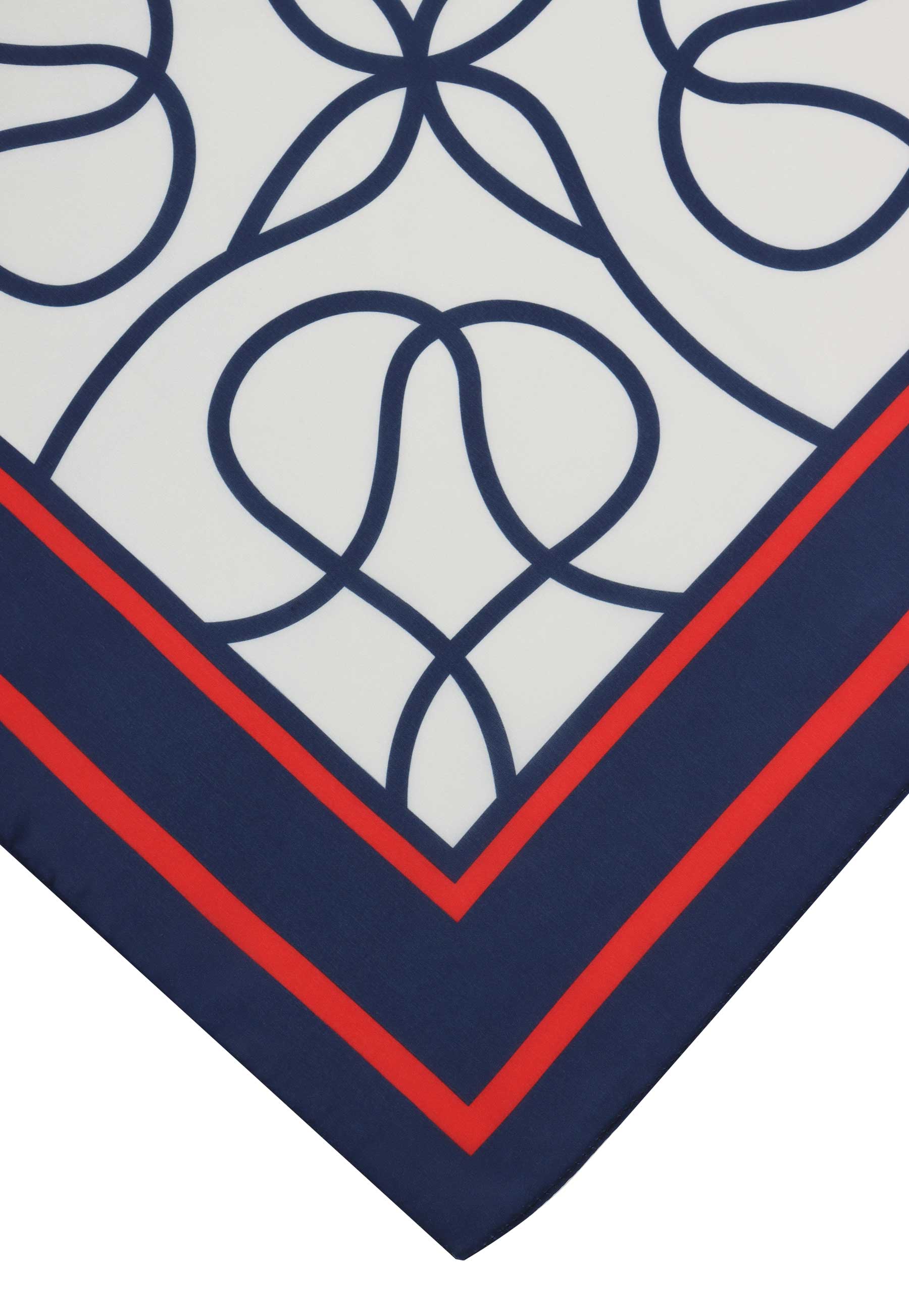Modisches Nicki mit grafischem Print und beonter Borde in maritimen Style. Nickitücher sind die neuen Must-Haves! Ob am Hals, am Handgelenk, in den Haaren, an der Tasche oder Hose, immer ein Hingucker und modisches Statement